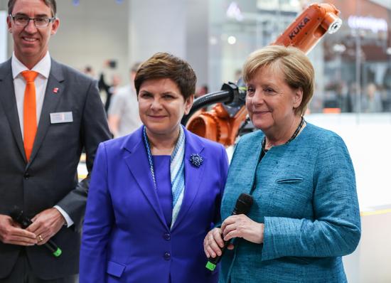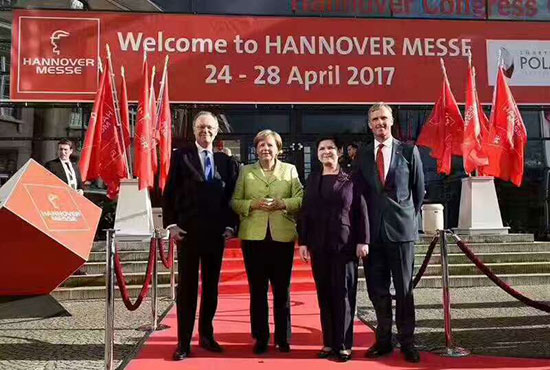2017年4月24日,世界工業(yè)第一大展mdash;2017德國漢諾威工業(yè)博覽會開幕,德國總理默克爾(如下圖前右) 和波蘭總理希德沃(前左)出席了2017年漢諾威工業(yè)博覽會。