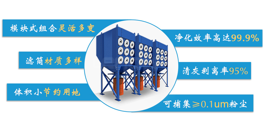 2、適合多種工況情況下的使用,根據(jù)粉塵特點(diǎn)選用不同材質(zhì)的濾筒,解決粉塵治理的難題;